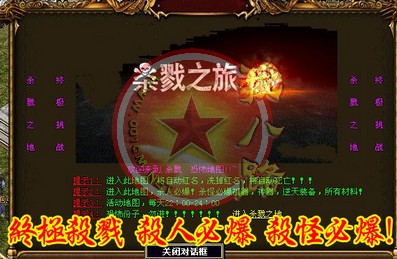 每天晚上22点到24点可进入,杀戮之地爆所有装备和材料以及祖器,和神器。进入杀戮地图自动红名,杀人必爆,杀怪必爆。