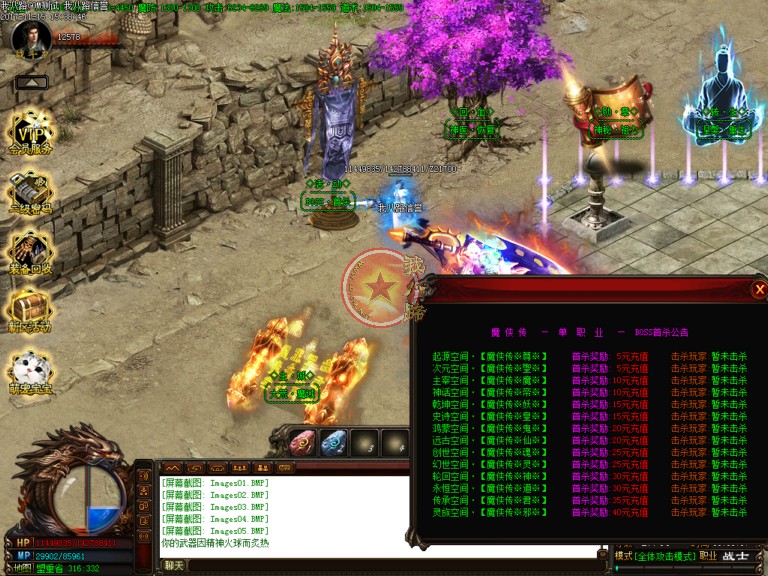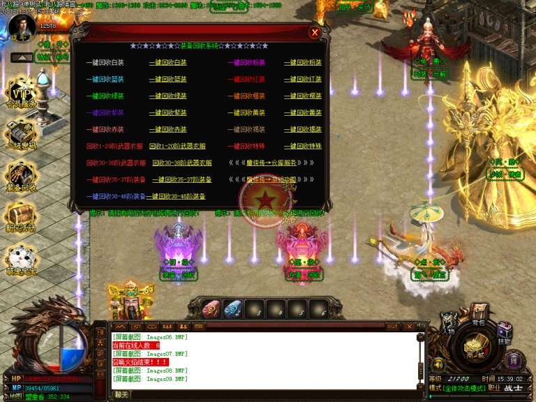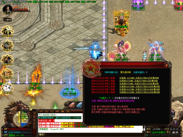 官方公告:首先打元宝加入VIP会员 开启全自动智能回收,回收效率翻倍,捡装备,就等于是在捡元宝!温馨提示:升级宝宝,升级称号,升级右手盾牌,转生,这些必须做,否则后期打怪慢,甚至打不动怪!本游戏所有装备均可爆出,包括所有终极装备.充值玩家领取礼包后.自身杀怪爆率翻倍,绝对真实有效!免费打元宝,到元宝之地(幻境)地图,大量怪物,回收起来非常快,记得开启VIP全自动智能回收系统!