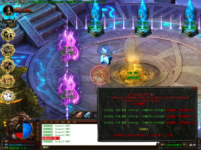 泡点到300级后打装备回收元宝 购置VIP会员.每日可领取打怪双倍爆率1小时,官方声明:本游戏所有装备全部可以爆出.元宝超级好打.绝对的屌丝逆袭版本,装备介绍:装备层次说明:白色--蓝色--绿色--紫色--粉色--红色--橙色--黄色,转生介绍:先升级10转.11-20转在第二大陆.21-25转在第三大陆 26-28转(大千世界),怪物介绍:普通怪--领主--帝尊--真神--超级BOSS-世界级--深渊级--(秒杀.劫难),仙宠介绍:可以召唤帮助前期打怪,也可合体.仙宠等级越高 后期合体血量越多.小资玩法:充值100-200 购置VIP 领取礼包.开启多倍打怪爆率..快速起步打BOSS!土豪玩法:充值满回馈 (转生.升级称号.升级宠物.升级右手盾牌) 直接PK打装备。更多的传奇开服一条龙单职业版本供你选择。