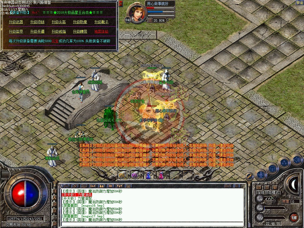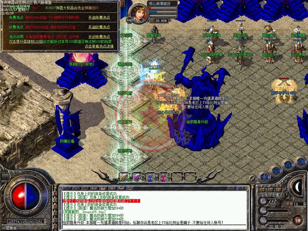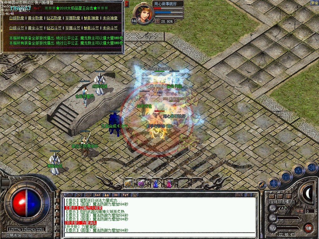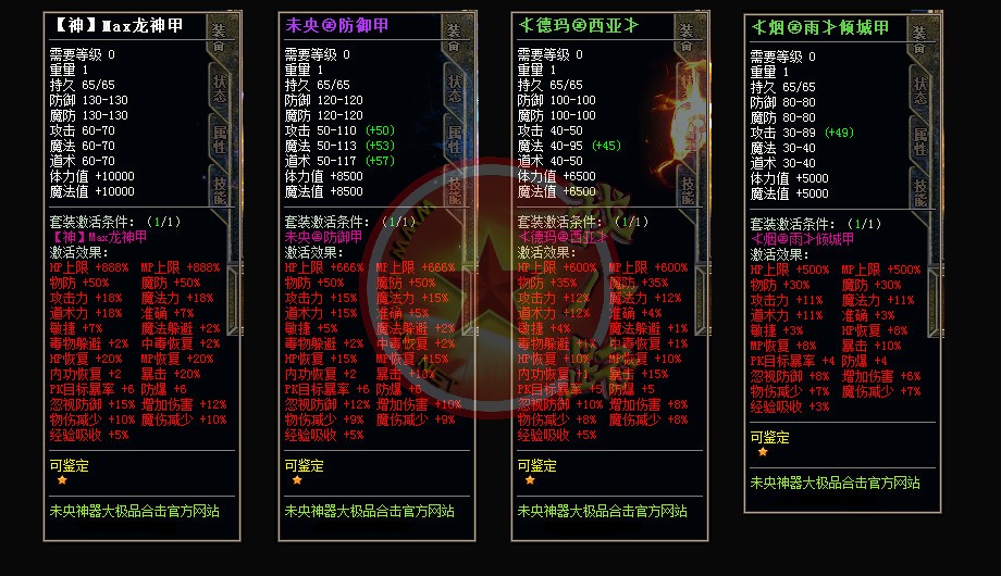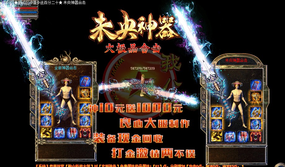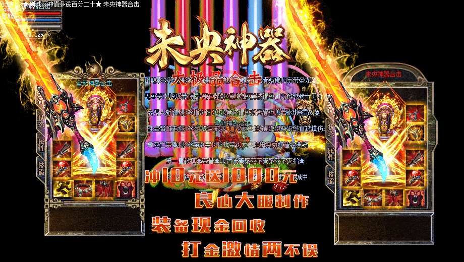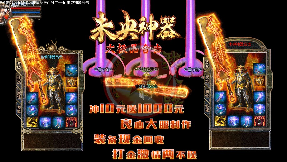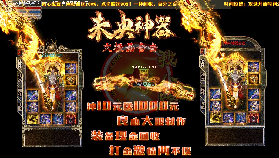 未央神器大极品合击,独家品牌,保证好玩!你的时间非常值钱,老板充钱称王,散人只要花时间也能称帝!全新定制传奇一条龙引擎,封死外挂,封死加速,发现开外挂者一律删号!