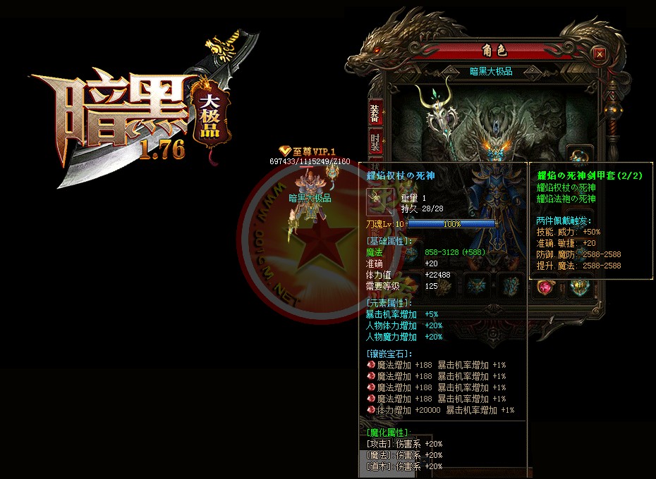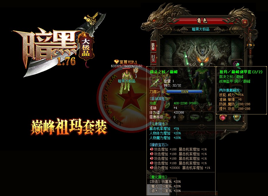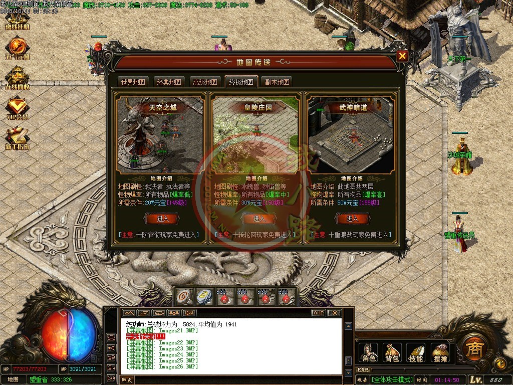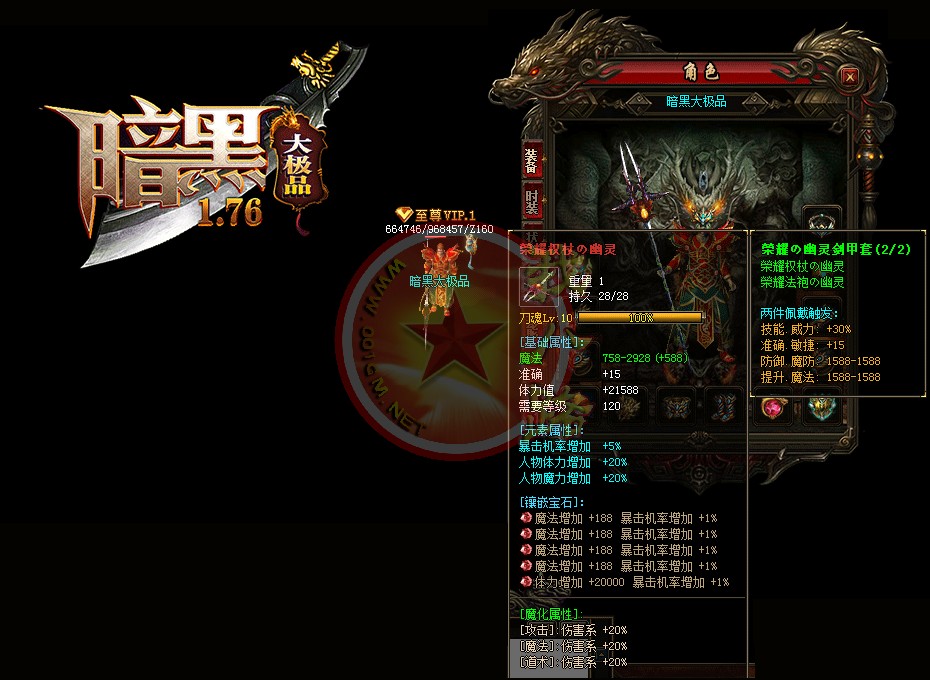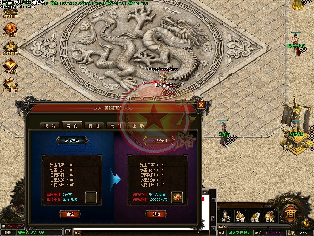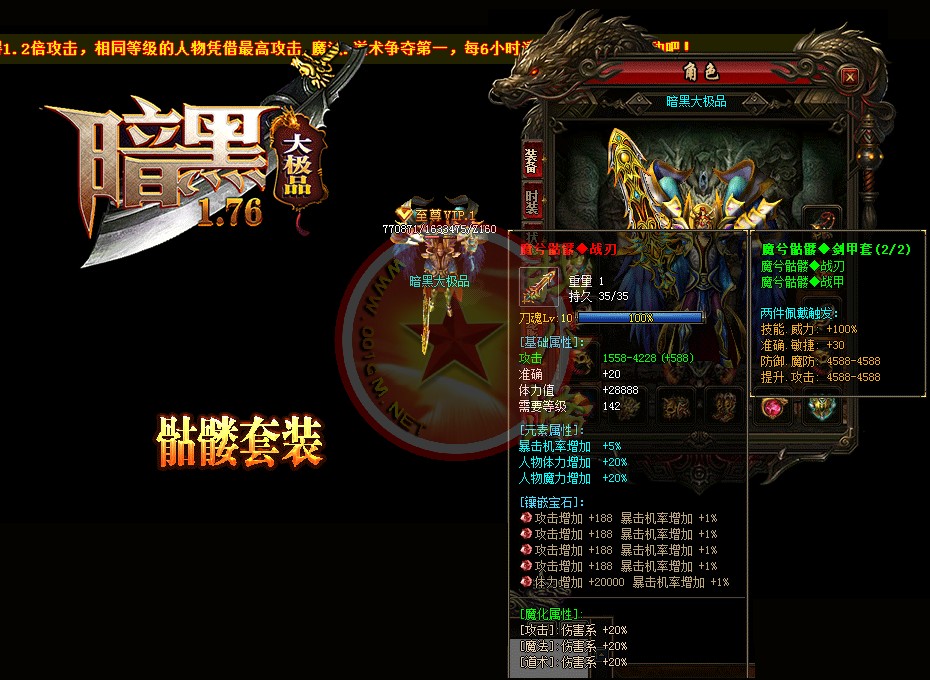 【宝石镶嵌】:所有怪物都会掉落镶嵌宝石,上限十分钟就能全身镶嵌宝石,镶嵌宝石的装备自动提升属性,镶嵌宝石免费合成免费镶嵌!【职业玩法】:本服三职业设置平衡,玩什么职业就看个人手法与喜好,道士在110级.120级.130级.140级.150级宝宝有不同的成长,让道士不再沉默!【极品转移】:极品最高可以强化至488超级极品属性,并且可以转移装备的传奇版本极品属性到更高级的装备上去!!【转生筋骨】:满转可以修炼筋骨,筋骨灵力值提升需要筋骨碎片来提升,最高可以提升5层,元神属性一定程度提高总体战斗力!!【天下第一】:天下第一获得1.2倍攻击,相同等级的人物凭借最高攻击.魔法.道术争夺第一,每6小时清理一次,赶快行动吧!
