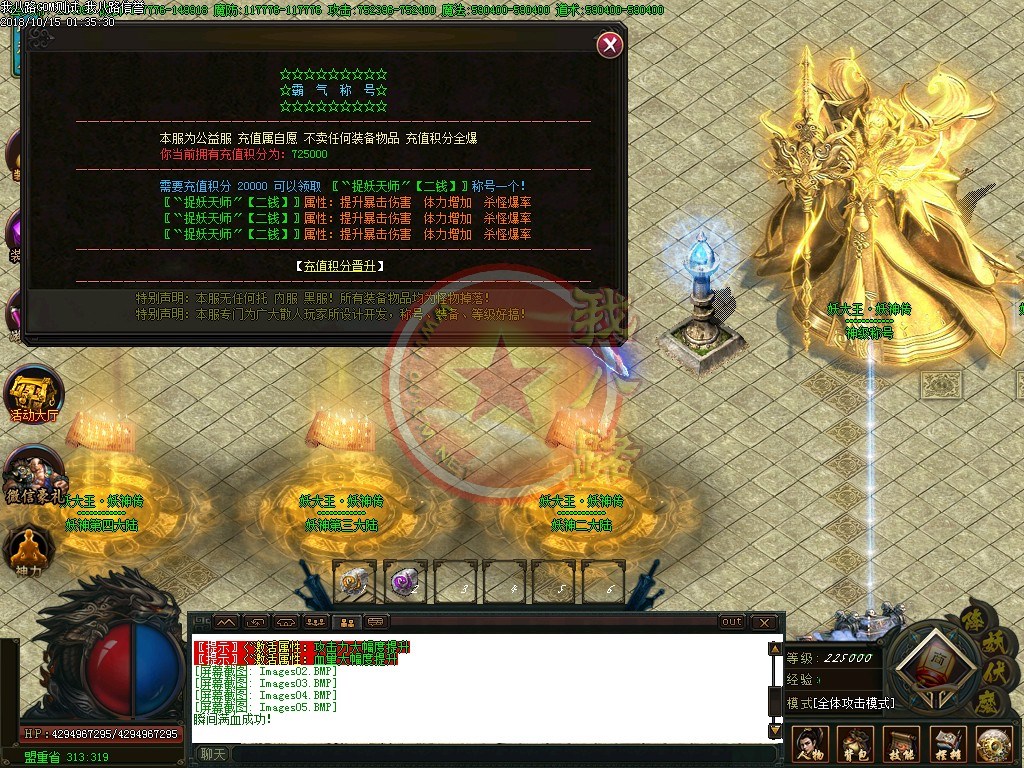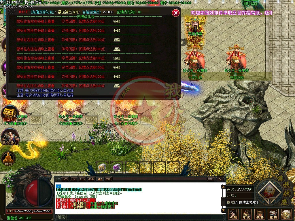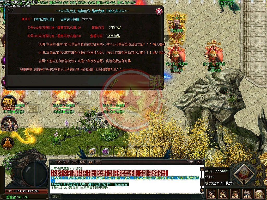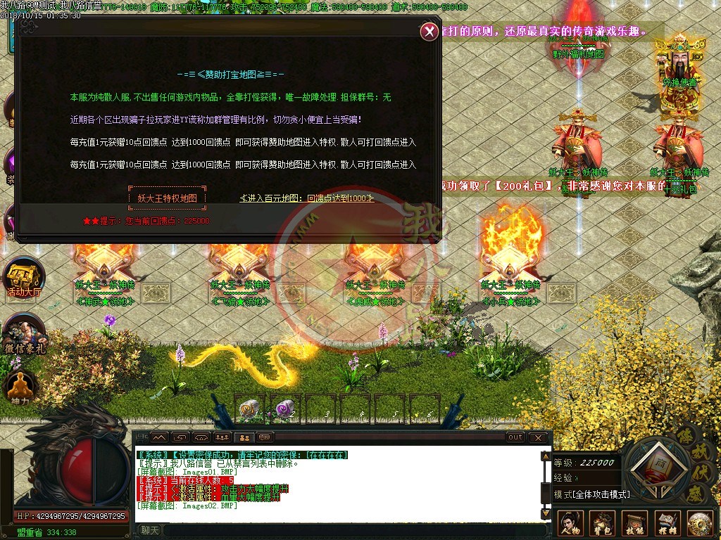 【怪物残骸】:怪物残骸和BOSS头颅作用很大的,千万别以为是垃圾给丢弃了,可兑换元宝和荣誉点!【赞助系统】:为保持服务器和广告支出开销特设定传奇gm基地赞助奖励爆率系统,真是有效,感谢大家对本服的支持与厚爱,公平.公正.公开是我们的宗旨。