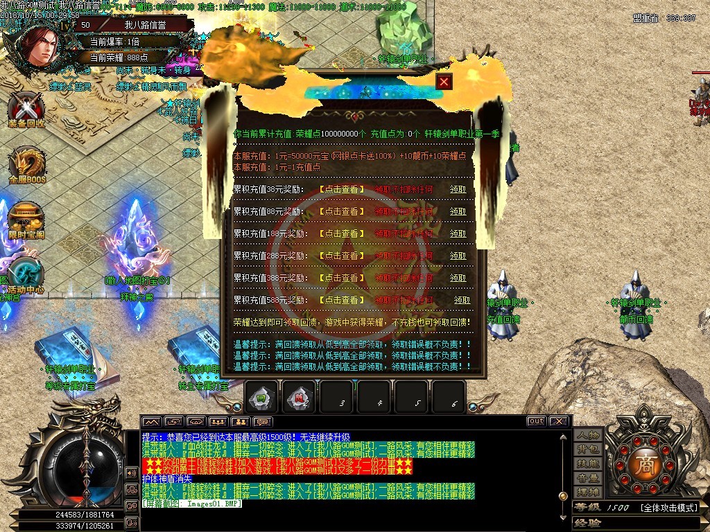 1元=50000元宝(点卡赠送80%)(网银赠送100%)本服装备全部爆出,绝无合成,无隐藏消费,脸白爆终极,完全看脸的时代..现在的玩家,首区不玩,区开多了不玩,请问你还能玩什么?战区奖励现金500元,统战区攻城奖励800充值?本服GM体验散人非常好混,元宝非常好打,打到元宝去换功勋,升称号,加爆率的哦..