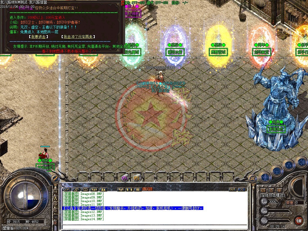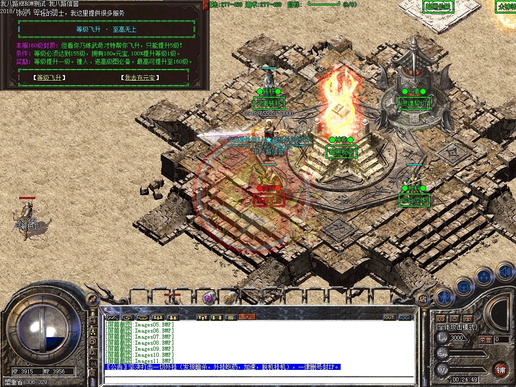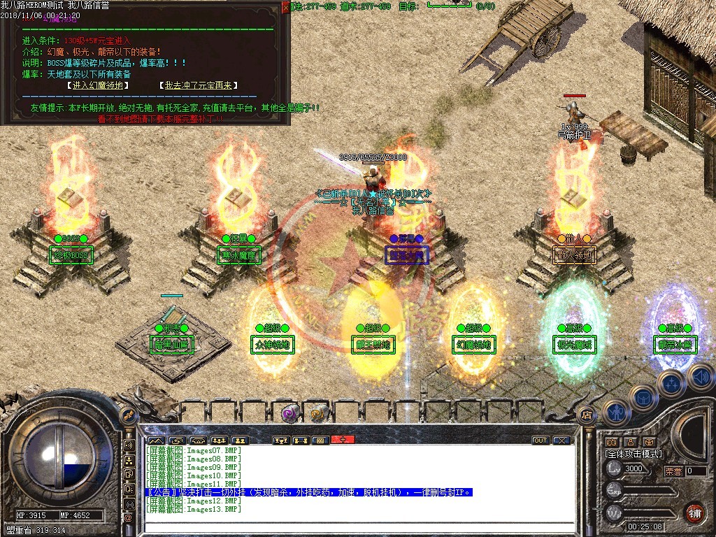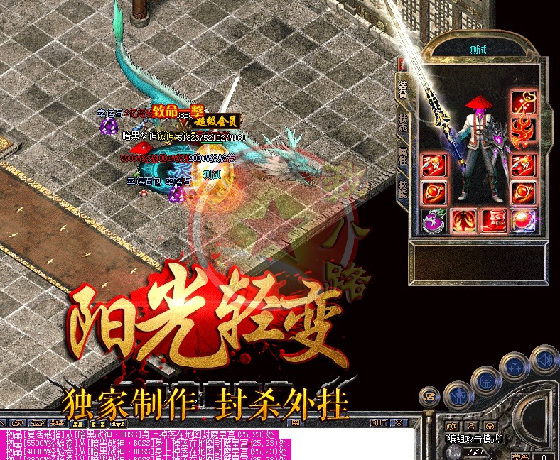 欢迎来到独家全新轻变封挂版本,本服全球仅此一家!坚决打击一切外挂(发现暗杀,外挂吃药,加速,脱机挂机),一律删号封IP。本F所有装备均可在传奇私服架设游戏中获得,爆率超高,BOSS爆终极!请不要相信游戏中任何,出售元宝装备的,游戏中说自己是管理卖元宝装备的都是骗子!请保管好自己的帐号,不要把游戏任何资料告诉别人。