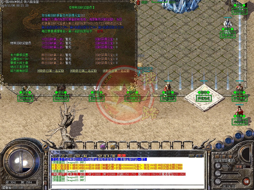 本服免费泡点也可泡到顶级,终极装备BOSS可爆出!本服所有地图装备爆率都超高,元宝回收最给力!!!是RMB和非RMB的天堂,人气很重要,激情更重要!!!本服绝对无GM,无客服QQ,游戏里任何形式说轻变元素自己是GM的全是骗子大家小心上当!!:一个好的游戏环境是靠大家维持的,破坏游戏,刷祝福喷人,盗号,骗装备等等一些小人手段,本GM一次面子不给,发现一次封整个网吧IP段请大家注意自己素质!:希望广大玩家在开心之余,把对本服的建议给传奇私服架设客服反馈一下,我们会一直改进,做到最好..:我们珍惜每一位玩家,对所有玩家一视同仁,绝不偏爱任何一位玩家,GM不参与游戏,不参与玩家装备纠纷,员工道德投诉电话:, 欢迎大家登陆本服务器希望所有玩家提出宝贵意见,如果大家觉得本服务器好玩的话请互相宣传..