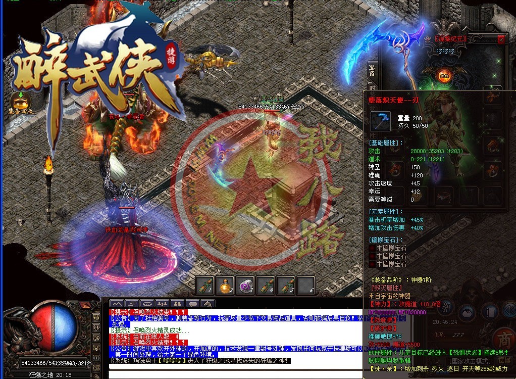 《第二十三章更新》:福利!新区后期装备开放2倍爆率!开放首爆奖励.1,更新了游戏界面!更新了一个新大陆!一套新装备!N多新BOSS!新装备直接爆的哦.没运气的也可以打材料去免费锻造的哦。2.更新一个超级武器宝箱有几率开出本服任意一把武器(含终极)!每天22.18分血肉战场有个我想开个传奇SF活动奖励武器宝箱.3.增加沙巴克攻城奖励可以获得超级武器宝箱一个!4. 调整了游戏装备属性!让游戏更合理化!新区后期装备真实双倍爆率!5. 更新了神舰深渊活动刷顶级BOSS新BOSS!6. 本次单职业更新内容比较丰富!细节调整比较大!游戏会更加长久激情!本次更新不跟老区合区.更多更新内容敬请游戏内体验,服务器长久稳定。定期更新..