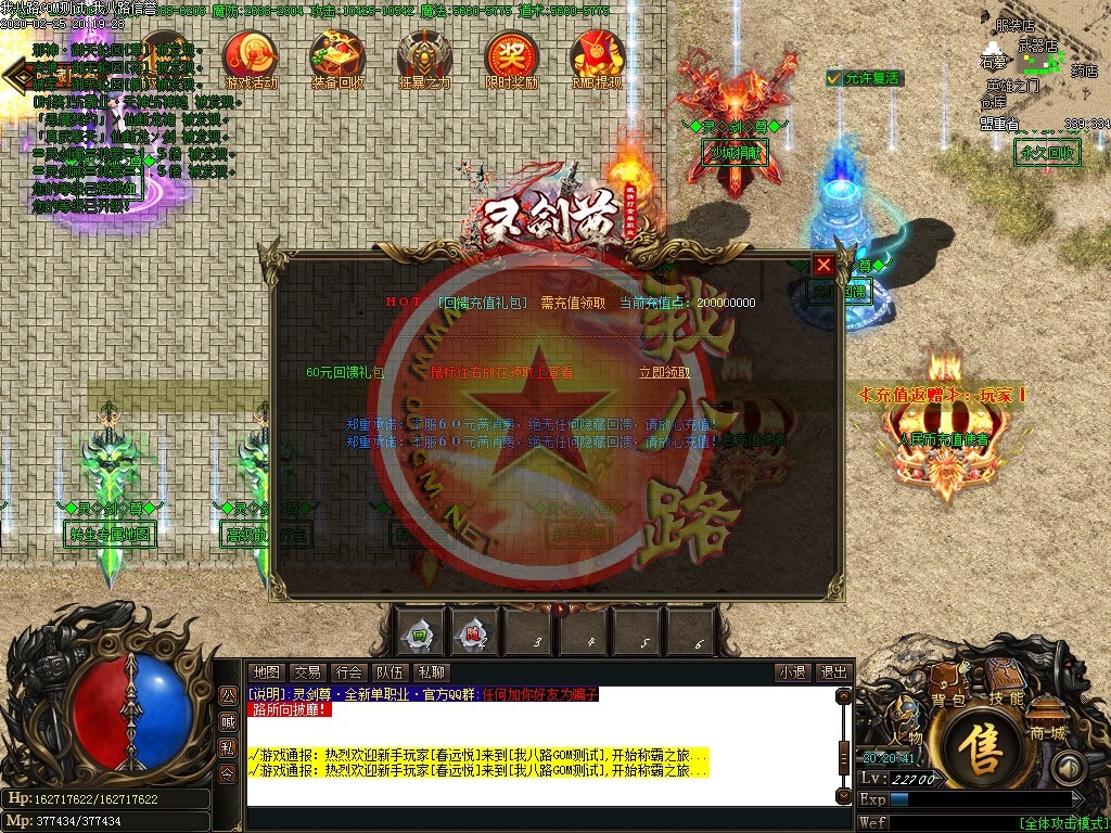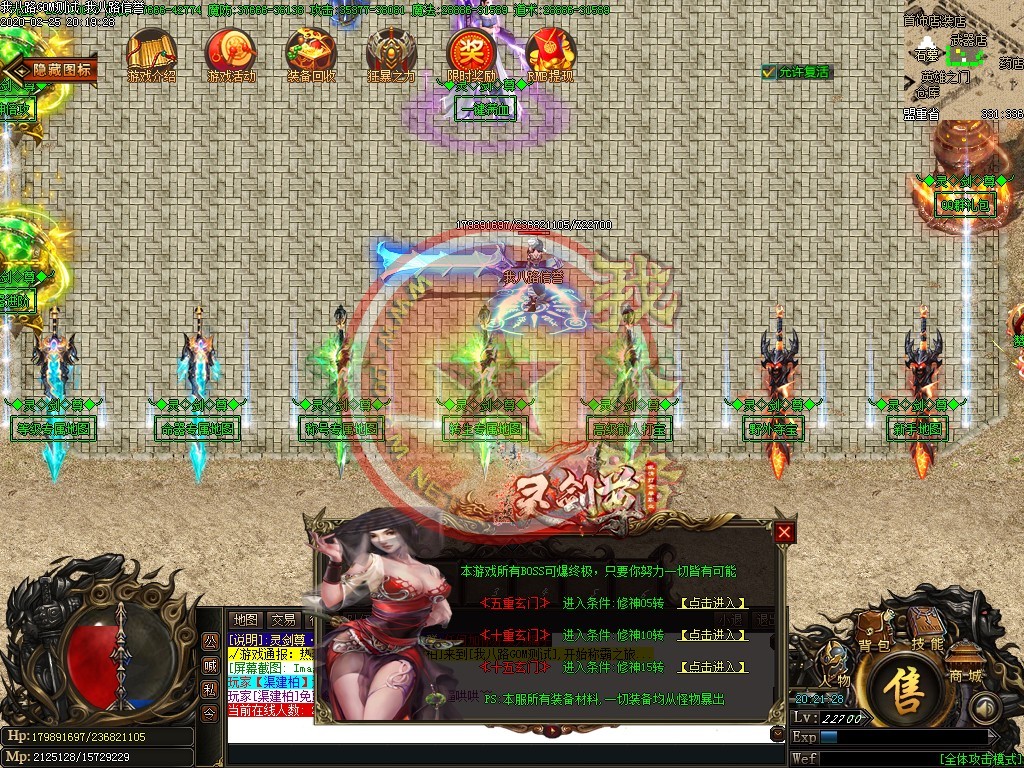 灵剑尊,盛大开区一条龙游戏正版授权,灵剑尊,稳定运营。【开区时间】:每1日00:30,10:00.12:00.14:00.16:00,18:00,20:00,22:00(测试区提前一个小时开放)【区区福利】:区区必爆打金单职业终极次终极神装,实物永久有爆率,材料暴率超高!海量首暴等你来干【版本介绍】:会员60元 狂暴10元 沙捐30元。简单易懂,无隐藏,无暗坑。起号一次。激情2个月..