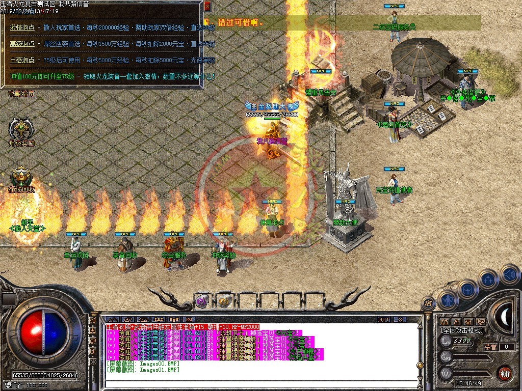 【系统】:本服专业传奇王者火龙团队,版本长期更新,如果有好的意见和建议,或发现BUG等可以去复古微变微信公众号反映!有奖征集..【系统】:道士不再残废,50召唤强化神兽,55级出月灵,60级=7级月灵,65级=3级白虎,70级=7级白虎,75级=3级白虎圣王!!!1.85王者火龙强势来袭..【元宝比例】元宝比例1:50000网银赠送100%,多充多送,无客服无其它比例【首沙奖励】每日新区不断,每4个新区进行合区,合区次日统一拿沙奖励1000人民币券!【新手起步】新人上线,进入免费激情泡点,快速升级,即刻激情!【长久稳定】本服公司运营,独家打造长久大服,一次选择三年不换!