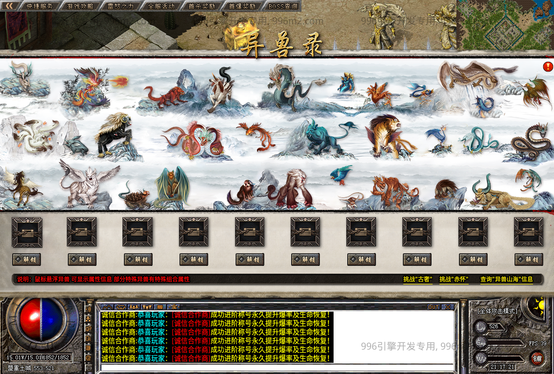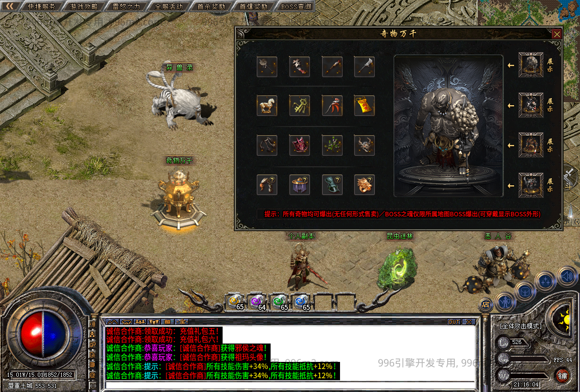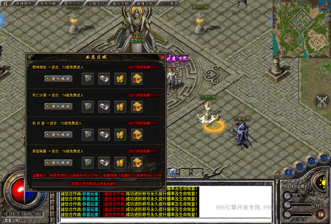 以下是996引擎三端四职业超耐玩特色三大陆隐藏图新版本的载图,截图只是冰山一角,有看中的伙伴可以联系我们【QQ:613386586 VX:xfcr528】